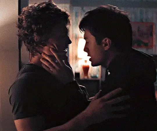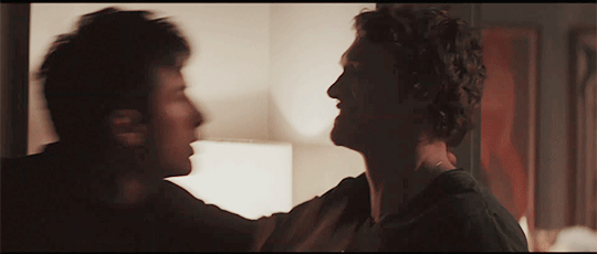 I love this because it’s unexpected and well executed. Shane is pissed off then he suddenly lunges at Ilya to make out with him with such hunger and intensity. Shane doesn’t often make the first move, but this shows how much he wants Ilya, the intensity in the performance is really a credit to Williams’ ability to inhabit a character in an emotionally full and authentic way. Both the actors’ backgrounds in sports that involve dance-like movement highlight their abilities to remember the steps of the choreography and move beautifully. ICs talk a lot about how much easier it is for actors to explore the emotional components of a scene if they don’t have to worry about the choreography, which is true. But it is also very difficult to remember the steps of the dance (IC choreography), and your lines, and your emotional placement in the overall story and the scene specifically. It takes a lot of focus and Williams and Storrie both deserve their flowers for being able to do all those things while making us as viewers feel so emotionally connected because we are able to fall into the characters; it is amazing work on their behalf as performers and a credit to Hunter and Tierney. I’ve seen countless actors in intimate scenes, some I’ve choreographed, some I’ve just watched, and Williams and Storrie are up there with some of the best.