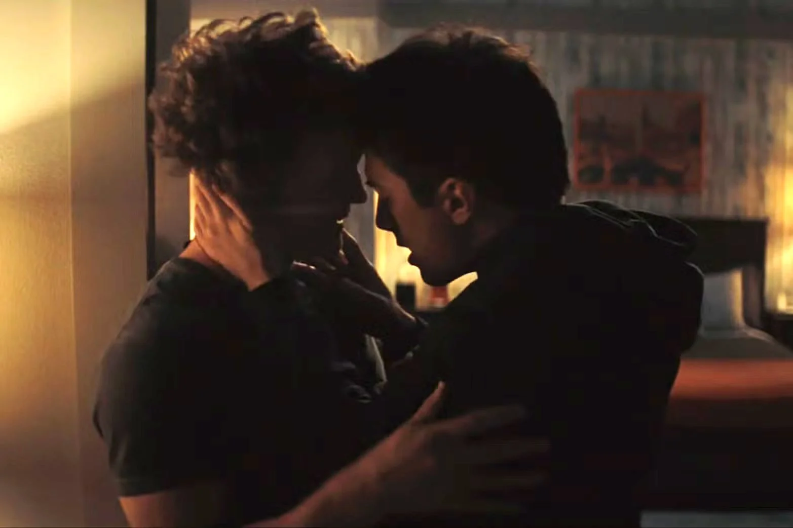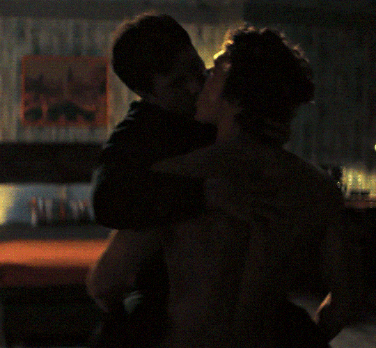 If it wasn’t for Shane jumping up a little before Ilya picks him up, this choreography wouldn’t stick out to me in this action/step. It’s not that it looks weird or doesn’t fit the context of the scene, there are just some parts that read to me as choreography. I’m not taken out of the scene; I absolutely love this set of steps. Seeing men pick up other men and carry them to a bed or a counter is gorgeous and usually reserved for heteronormative sex scenes. It’s worth noting that lifts are difficult and a lot of safety measures are involved (shoutout to stunt coordinators). Shane jumping up as Ilya’s arms move down makes the lift safer and is likely the easiest movement the actors found during rehearsals. Even when there is a step or action that jumps out at me, because Ilya and Shane are still exploring and feeling each other out, these little idiosyncrasies work so well with their characters. But also, sex isn’t immaculately choreographed in real life and these little beats that make these sex scenes look a little messy are so endearing and some of the parts that utterly thrill me.