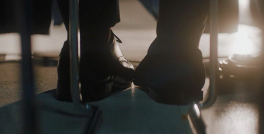 This was one of the first scenes that really spoke to me. And while there’s a lot I missed during my first watch, the way their shoes touch under the desk pulled me back to my last relationship when we used to sit with our thighs side by side and our boots or sneakers touching under his desk when no one else was around, as well as how we looked for support in each other in public spaces in vulnerable moments via unintelligible ways because; a) it wasn’t safe to be open about the relationship in these contexts, and b) because he was exploring his sexuality and didn’t want to come out. Plenty of people and characters do this, but I think when you’ve been in a secret queer workplace relationship, it just hits different. While this can be a sign of affection or wanting closeness in places where it’s risky or dangerous, there’s also communication in these movements. There is a particular tenderness in this scene as Ilya and Shane sit next to each other in front of a room full of cameras and press, that is more pronounced than in previous scenes. It’s subtle yet powerful.